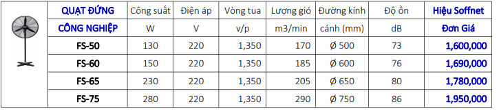 - Quạt đứng công nghiệp Soffnet kiểu dáng cây đứng công nghiệp mạnh mẽ, di chuyển dễ dàng ở những vị trí khó khăn, công suất lớn, động cơ bền bỉ