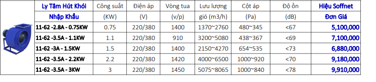 – Quạt gồm có 4 model: 11-62-2.5A, 11-62-2.8A, 11-62-3.5A, 11-62-4A